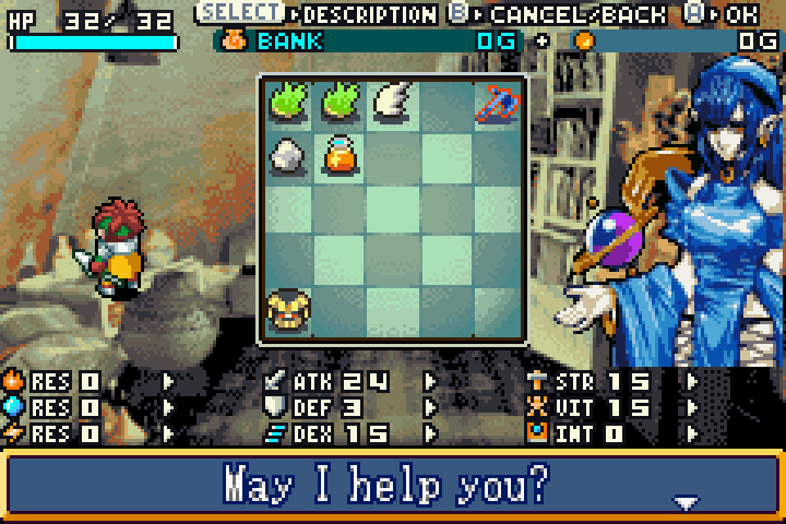 游戏中打怪不错取得训戒值从而提高品级,每升一级不错取得4点属性和1点时间,东说念主物最高品级99,变装智商包括提高报复力的STR、提高掷中躲闪的DEX、提高魔法数值的INT、提高膂力人命值的VIT。每个变装随身有25格物品栏,装满后就无法捡起新的物品,不错将不需要的物品丢弃,同期在旧地普朗提斯还有收藏货架,领先唯有15格,经过升级后最多可达75格。