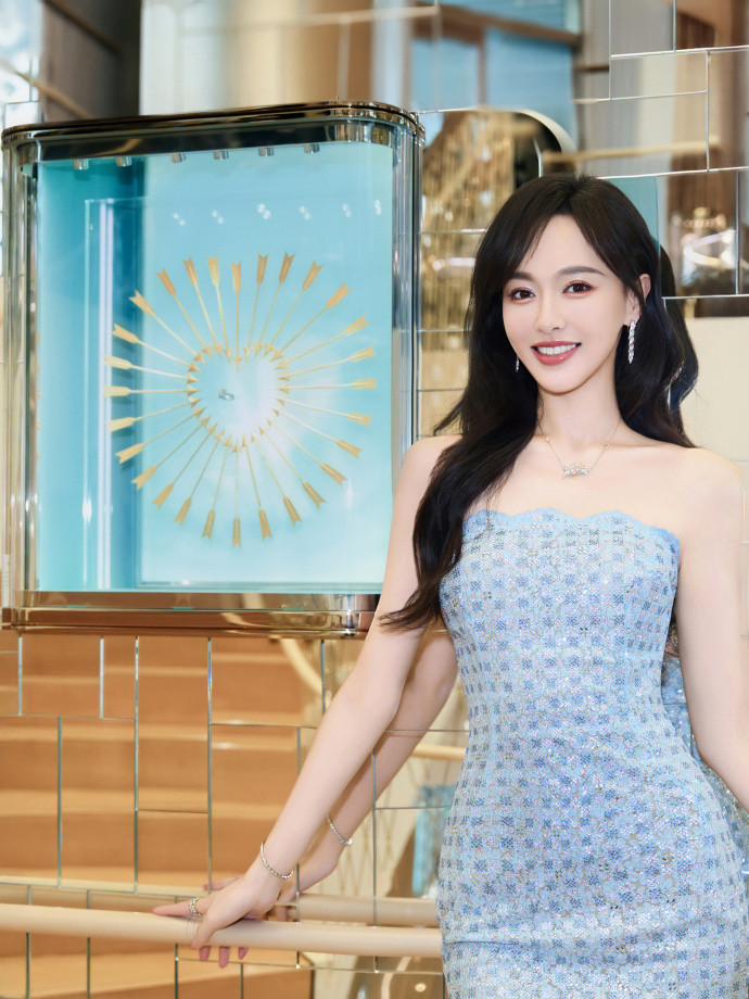 这种低富饶冰蓝色自带高等滤镜,既衬得肤色通透皑皑,又能在东谈主群中脱颖而出。唐嫣用任意的姿态操纵着这套造型,莫得过度修饰,却让每一个细节皆恰到平正 —— 从裙身的亮片光芒到珠宝的细碎精通,皆在诉说着 “低调的奢靡”。