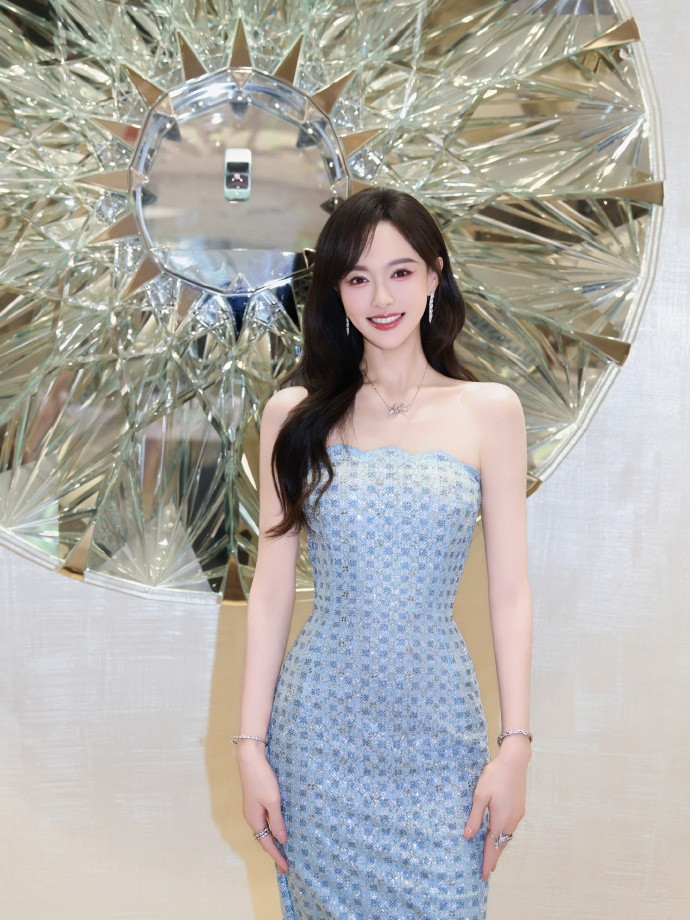 冰蓝抹胸裙,唐嫣的这款穿搭又把高等感与仙女感均衡到了极致,竣工发挥了 “直率又暖和” 的东方审好意思。